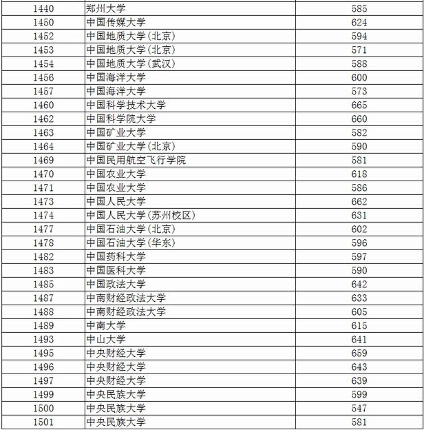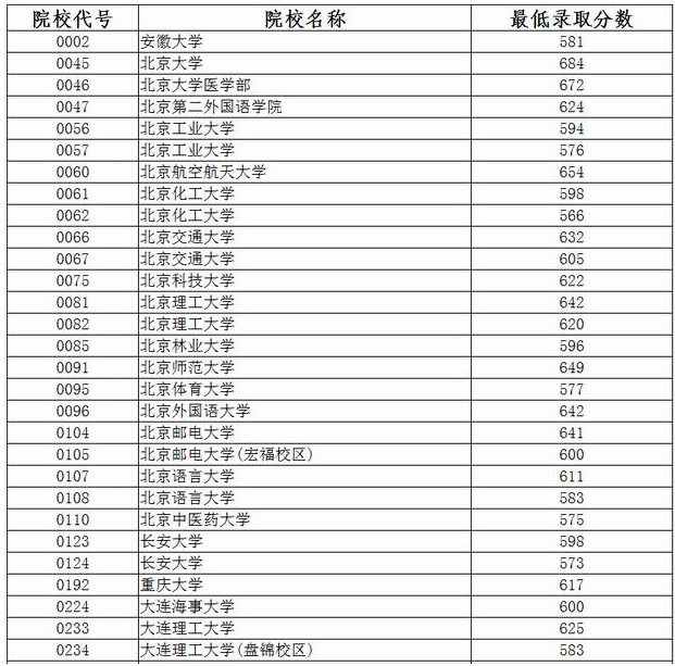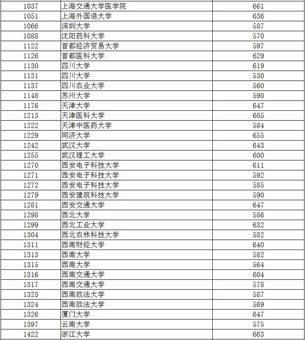 文科院校中最低錄取分超過600分(含600分)的有44所,比去年增加18所。清華大學(xué)排名第一,最低錄取分為654分,其次是北京大學(xué)、上海交通大學(xué),分別為648分和644分。