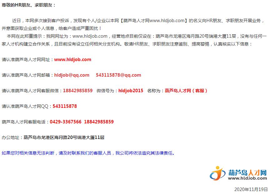 【葫蘆島人才網(wǎng)】鄭重聲明