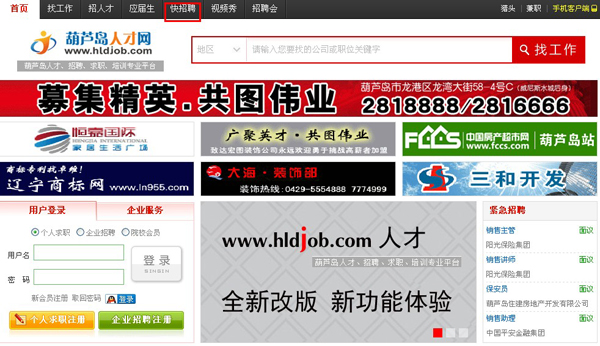 葫蘆島人才網(wǎng)【免注冊發(fā)布服務(wù)指南】